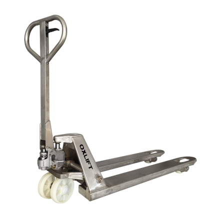 Ручная гидравлическая тележка (рохля) из нержавеющей стали OX25-Steel предназначена для использования на пищевых и химических, медицинских производствах и учреждениях, в
