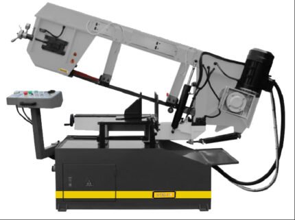 Станок Stalex BS-912B имеет поворот губок тисков, для пиления под углом необходимо изменять угол установки тисков. Зажим заготовки осуществляется тисками вручную, подача заготовки — также вручную. Мобильность станков позволяет использовать их на производстве непосредственно там, где это необходимо. Станки находят широкое применение в серийном и мелкосерийном производстве. Система СОЖ в стандартной комплектации, регулировка скорости осуществляется с помощью ступенчатого шкива (4 режима скорости).