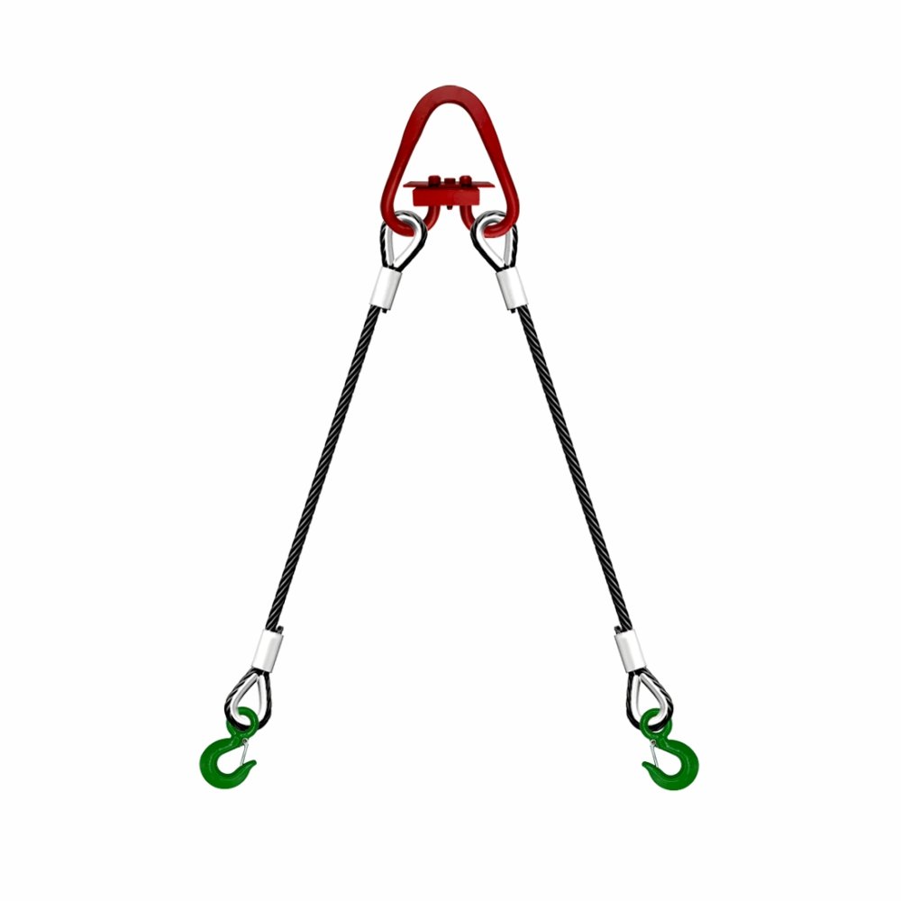 2 СК Опрессовка – грузоподъемное оборудование из двух соединенных стальных канатов с сердечником. Ветви стропа фиксируются овальным или треугольным звеном. Конструкция имеет чалочный крюк КЧ1 с одной стороны и коуш с петлей – с другой. Концы тросов опрессованы алюминиевыми втулками.