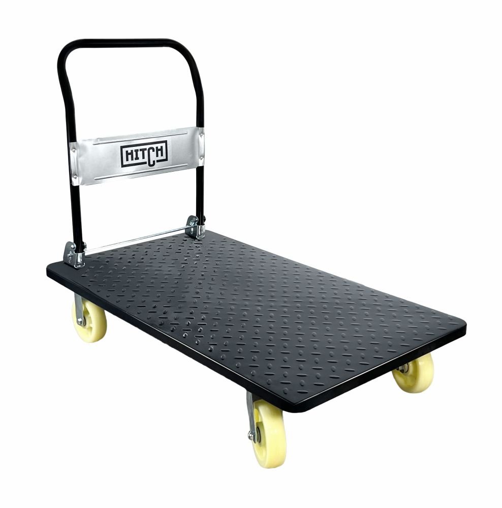Платформенная тележка от бренда HITCH представляет собой оборудование для транспортировки грузов, оснащенное четырьмя колесами. Она предназначена для перемещения различных грузов и благодаря отсутствию бортов позволяет перевозить нестандартные предметы.