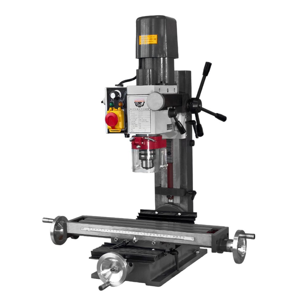 Из достоинств следует отметить вертикальную тонкую подачу и плавную регулировку оборотов, которые обеспечивают максимальную точность и качество обработки детали. Есть и другие достоинства. Например: возможность установки фрезерной головки под углом вправо или влево. Рабочий стол из чугуна оснащен Т-образными пазами для крепления дополнительных приспособлений или заготовки.