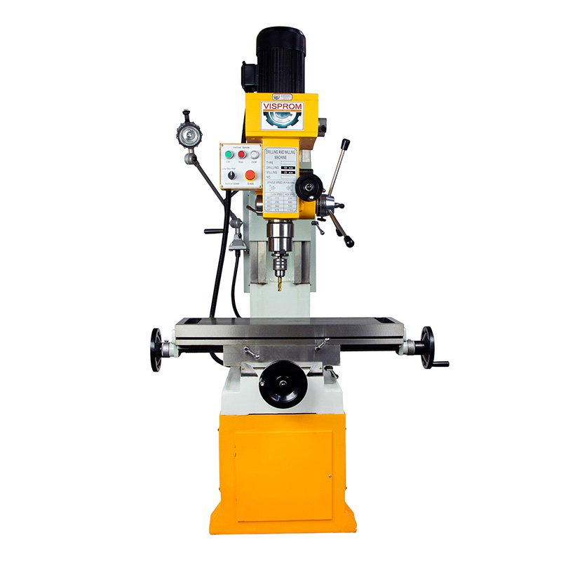 Особенности модели -это компактные размеры и простота конструкции. Станок оснащен мощным вертикальным шпинделем, способным работать на разных скоростях для выполнения различных операций. В шпиндель можно установить сверлильный или цанговый патрон и обрабатывать материалы различной твердости. Так же он может работать с торцевыми и концевыми фрезами разных размеров и способен нарезать резьбу. Фрезерную головку можно поворачивать вправо и влево на определенный угол. Расстояние от шпинделя до рабочего стола и размеры самого стола позволяют комфортно работать с различными деталями. Рабочий стол оснащен Т-образными пазами для крепления дополнительных приспособлений.