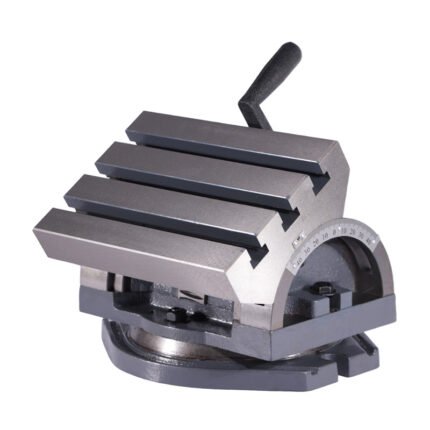 Наклонный поворотный стол с ручным приводом KTT-300R предназначен для использования в качестве дополнительной оснастки на универсальных фрезерных и сверлильных станках. Использование стола позволяет успешно выполнять такие операции как фрезерование, сверление и обработка отверстий, фрезерование пазов и уступов, и других элементов детали под углом от 0° до 45°.