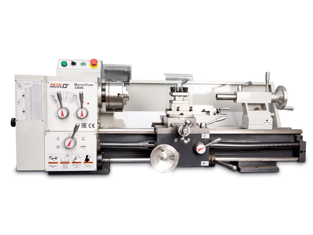 Metal Master MasterTurn 3360E – это настольный токарно-винторезный станок, предназначенный для обработки резанием заготовок из конструкционных материалов (сталей, чугунов, сплавов цветных металлов), а также для нарезания метрических и дюймовых резьб. Главное преимущество токарного станка: Наличие металлических шестерней обладающих высоким ресурсом и повышенной износостойкостью, а наличие клиновидного ремня позволит избежать повреждения двигателя при превышении нагрузки на шпиндель