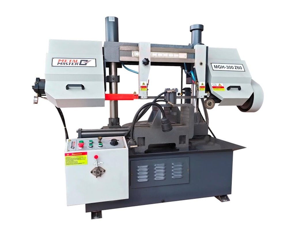 Если нужно выполнить раскрой металлических изделий простой или сложной формы, с различными вариантами сечений, то обратите внимание на такое надёжное и долговечное оборудование, как двухколонная горизонтальная ленточная пила Metal Master MGH-300 Z60