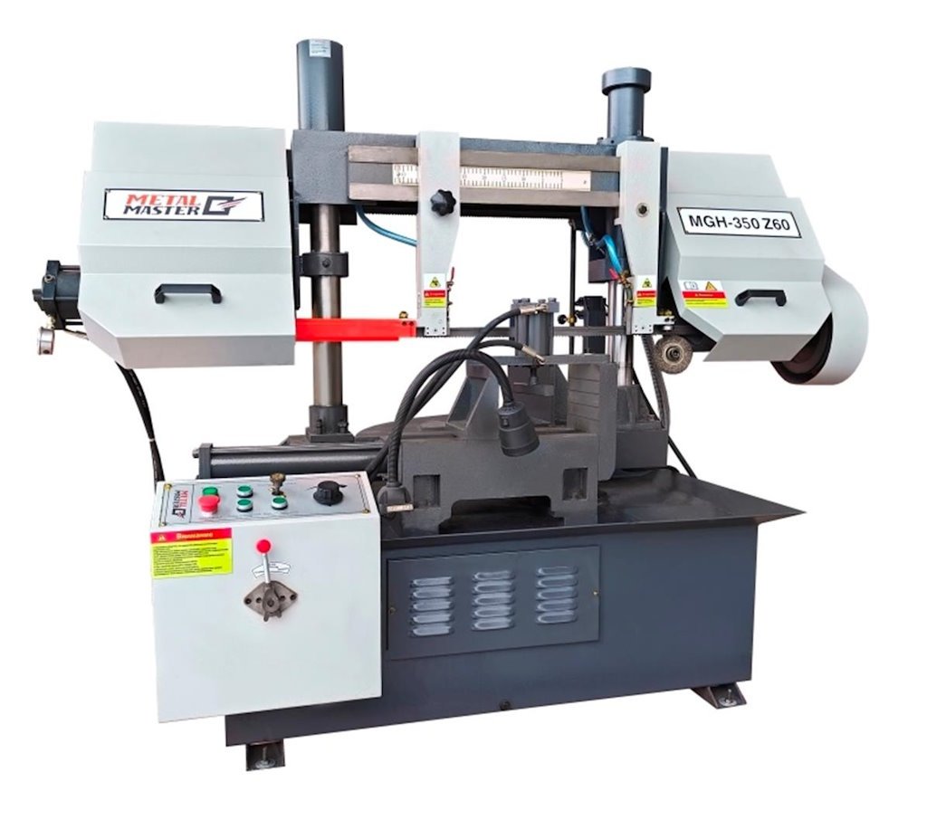 Если нужно выполнить раскрой металлических изделий простой или сложной формы, с различными вариантами сечений, то обратите внимание на такое надёжное и долговечное оборудование, как двухколонная горизонтальная ленточная пила Metal Master MGH-350 Z60