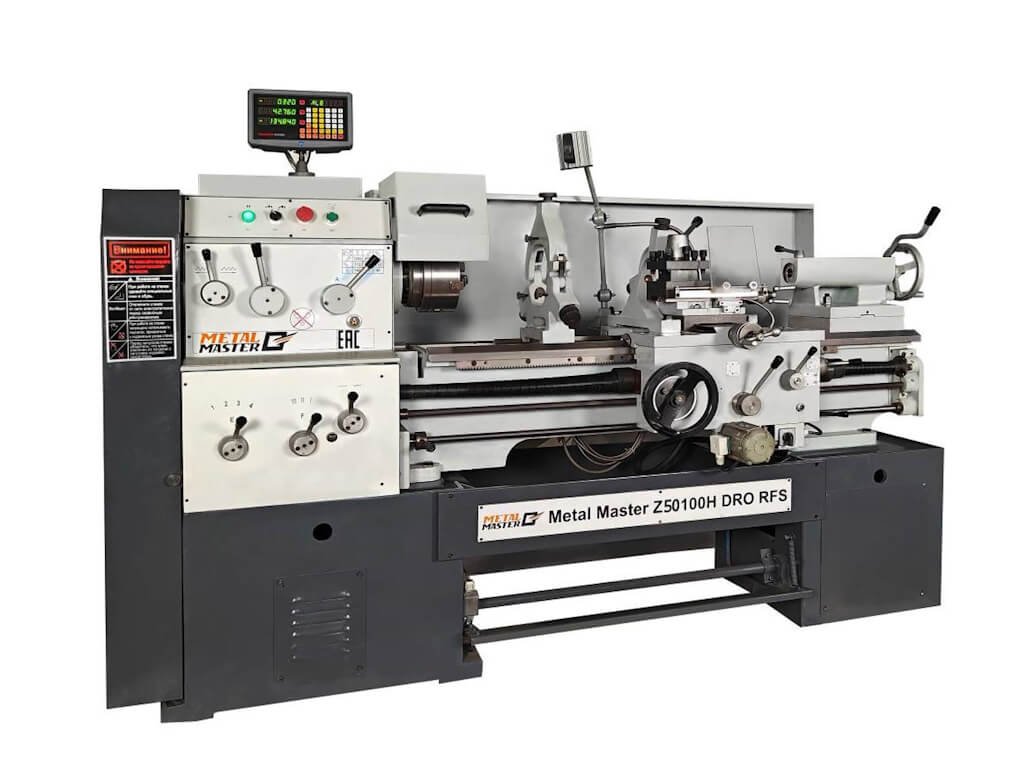 Metal Master Z50100H DRO RFS – это универсальный токарно-винторезный станок, предназначенный для обработки резанием заготовок из конструкционных материалов (сталей, чугунов, сплавов цветных металлов), а также для нарезания метрических, дюймовых, модульных и питчевых резьб.